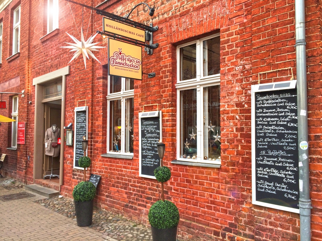 Pfann- und Reibekuchen in einem niedlichen kleinen Ladenlokal im Holländischen Viertel. Es werden von freundlichem Personal sowohl süße Pfannkuchen zum Beispiel mit Vanille-Eis, als auch deftige Pannkuchen mit Schinken und Feldsalat serviert. Aber egal welcher, alle schmecken unvergleichlich lecker und sind ein absolutes Muss für jeden Potsdamer und Touristen.